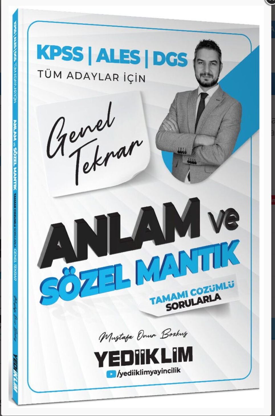 Yediiklim 2026 KPSS ALES DGS Tüm Adaylar İçin Anlam ve Sözel Mantık Tamamı Çözümlü Sorularla Genel TekrarBarkod Kodu9786255836724Yayın EviYediiklim YayınlarıYazarMustafa Onur Bozkuş